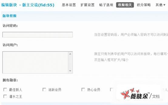 拥有勋章:用户必须拥有指定的勋章才可访问此版块。运营 => 勋章中心,启用勋章才有效。