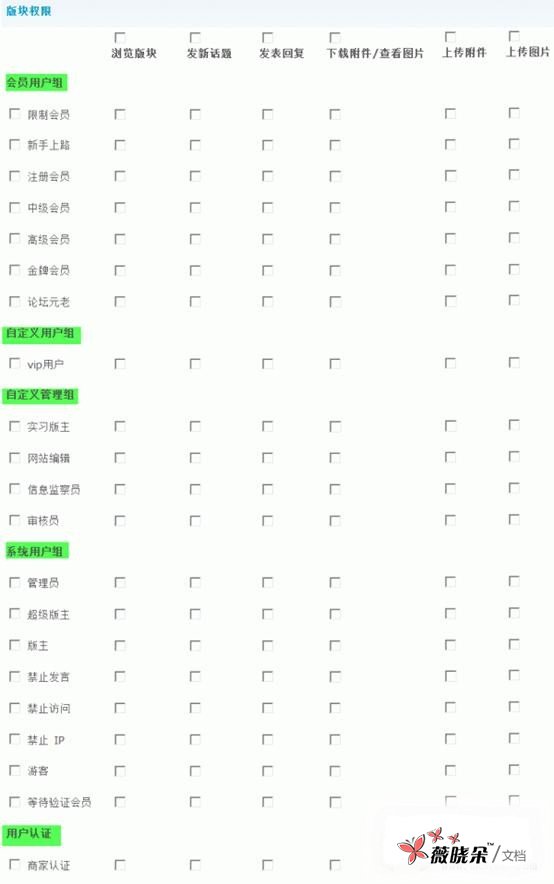 浏览版块:全部用户组都可以浏览该版块;