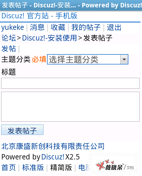 选择主题分类,填写标题,填写主题内容,发表即可 (不支持格式样式等的编辑)