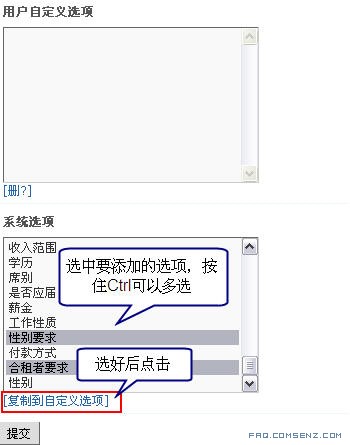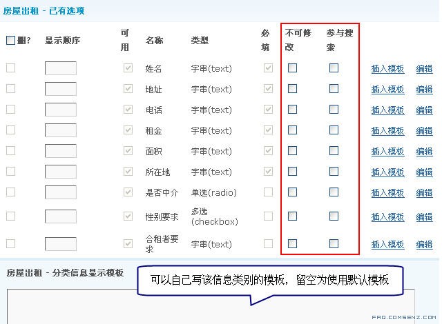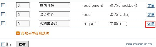 检查要添加的房屋出租信息类所需的选项是否都已经存在,若有不存在的,请点击下面的 「添加分类信息选项」 添加上。