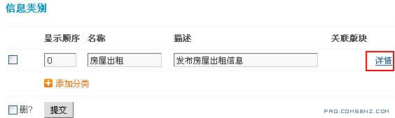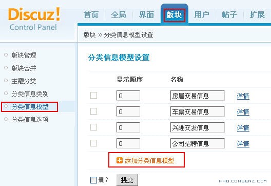 后台 => 版块 => 分类信息类别: