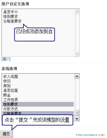 设置好后,点击页面下的 「提交」 完成 「房屋出租」 信息类别的建立。