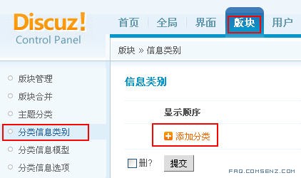 四、在版块开启分类信息
