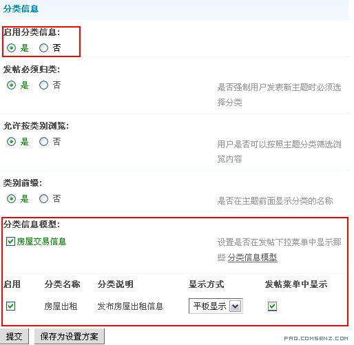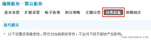 分类信息选项和分类信息模型都是为分类信息类别的建立打的基础。只有建立了分类信息类别,在论坛版块中才能开启分类信息。