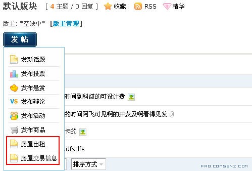 点击 「房屋出租」 发布主题: