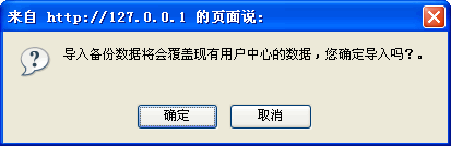 点击 「导入」,提示:「导入备份数据将会覆盖现在用户中心的数据,您确定导入吗?。」