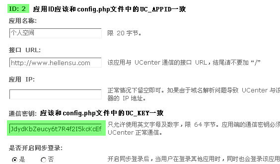 再登录 UCenter 后台 => 应用管理:编辑个人空间应用,即可看到下图所示:
