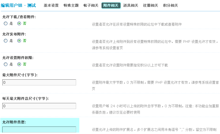 为了控制论坛的附件类型,我们需要设置附件允许上传的种类或者类型。