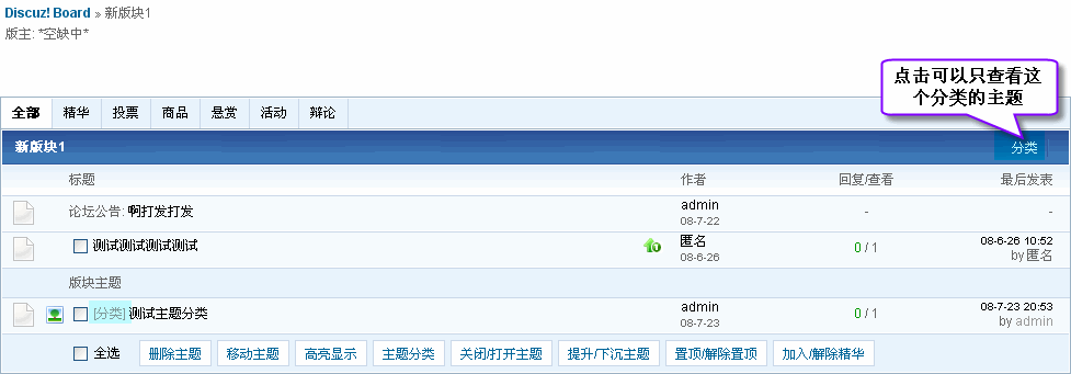 为了方便查询帖子,可以使用论坛使用的主题分类。本教程主要讲述主题分类的开启以及使用、显示。
