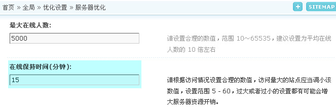 后台 => 全局 => 优化设置 => 服务器优化 => 在线保持时间,这里是按照分钟计算的,将时间调整为较高的数值即可。