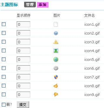 后台 => 帖子 => 主题图标,即可看到下图所示: