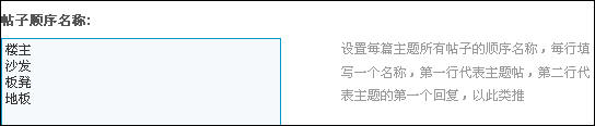 默认的帖子顺序显示方式您是不是觉得太平淡无味了呢,Discuz! 提供了自定义帖子顺序显示名称的功能,您可以根据自己的喜好来定义每楼帖子的名称。