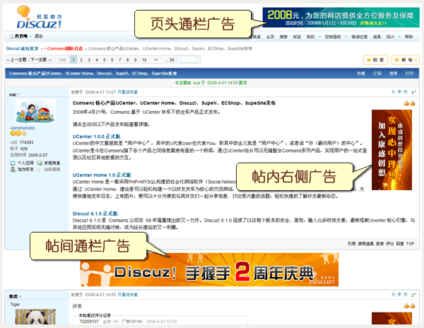 广告主可以根据推广需求和预算,自行选择多种表现形式和显示方式的主题帖套餐。