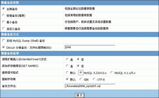 后台备份或使用 phpmyadmin 都可以;(具体备份的方法请参考 「论坛搬家详解」),后台备份如下图所示: