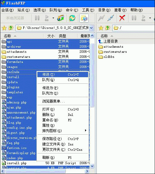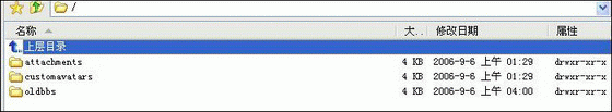 我们常用的对论坛程序及其附件的备份方法为:在 FTP 里的目录下把除了 attachments 和 customavatars 以外,把其它所有文件和目录全部移动到一个新建的目录中,比如 oldbbs 。当然,你也可以将所有论坛文件都移到到 oldbbs 目录中进行备份。如下图所示: