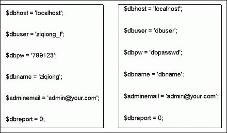 右边为新版本论坛的 config.inc.php 文件的数据库信息。