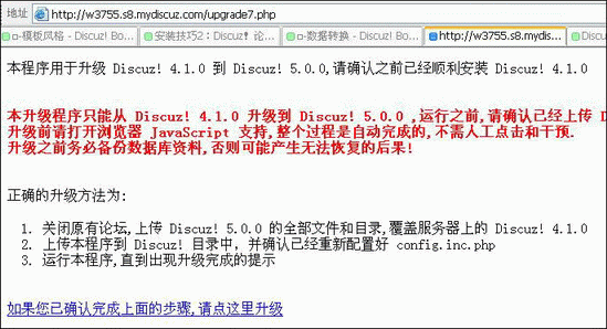 3 、上传下载的 Discuz! 5.0.0 安装包的 ./utilities/upgrade7.php 到论坛程序根目录下,在浏览器中运行升级程序。