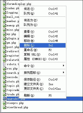 1 、删除服务器上的升级程序 upgrade7.php 。