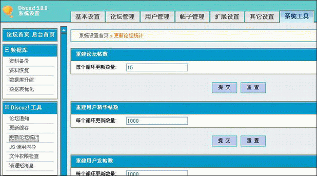 2 、用管理员账号密码登录到论坛,进入系统设置,更新论坛统计,更新缓存。