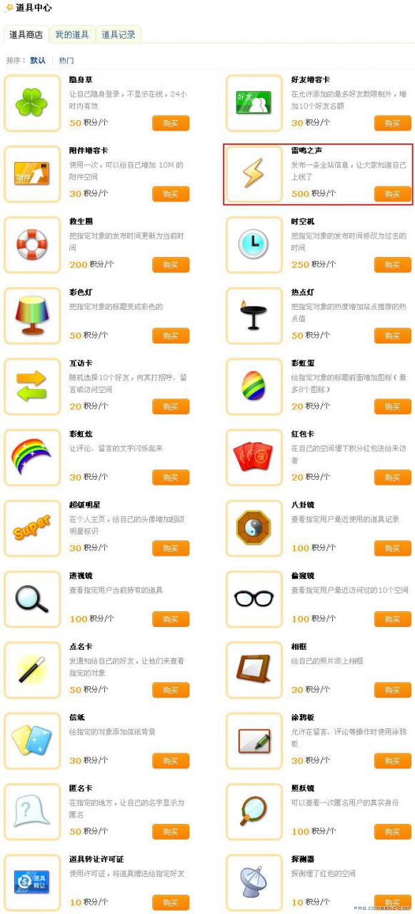 道具 「雷鸣之声」 的功能:发布一条全站信息,让大家知道自己上线了。