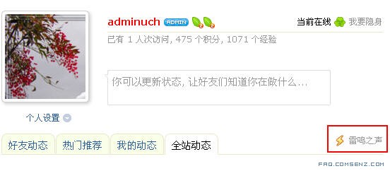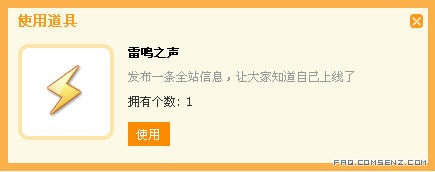 上线后,如何引起全站人员的关注呢,通知他们自己在线呢?这时您可以尝试下 「雷鸣之声」 道具的威力。通过该道具,您可以对全站用户发出 「雷鸣之声」,告诉他们你在线。