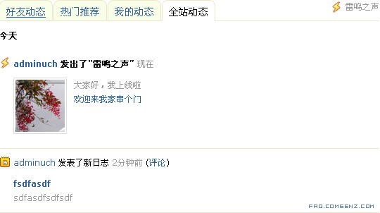 点击 「使用」,其他用户登录后,即可在 「全站动态」 中看到自己发出雷鸣之声的动态:
