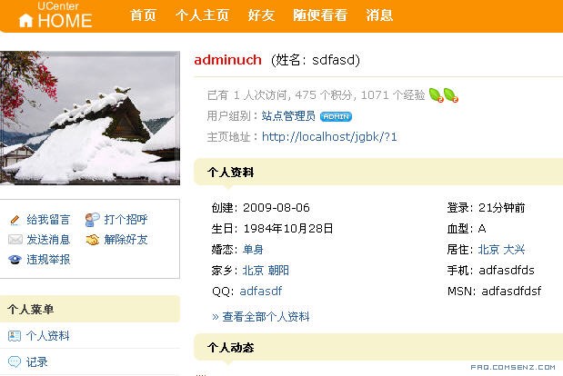 登录 UCenter Home 2.0 前台,点击右上角的 「道具」 链接进入道具页面,如下图所示: