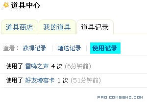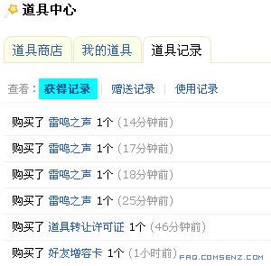 在 「道具中心」 的 「道具记录」 里您可以看到道具的 「获得记录」 、 「赠送记录」 、 「使用记录」 。