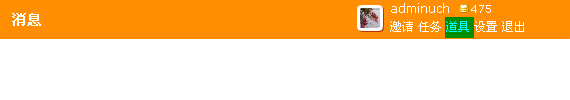 登录 UCenter Home 2.0 前台,点击右上角的 「道具」 链接进入道具页面,如下图所示: