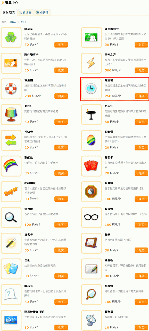 上图中点击 「时空机」 道具右下角的 「购买」: