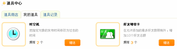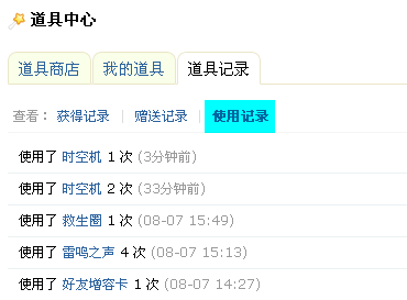 在 「道具中心」 的 「道具记录」 里您可以看到道具的 「获得记录」 、 「赠送记录」 、 「使用记录」 。