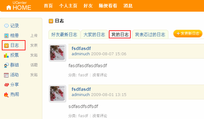 点击前台左侧菜单中的 「日志」,再点击 「我的日志」: