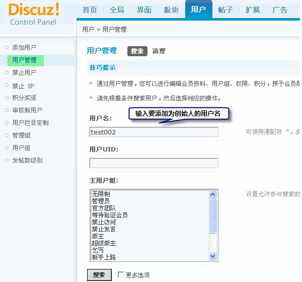 下面详细介绍一下添加论坛创始人的具体操作步骤: