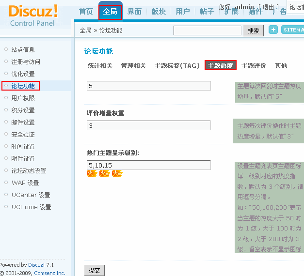 主题热度是 Discuz!7.1 新增的特性,站长可以在后台设置主题热度值及热度增加权重值。当某个主题达到站点设置的热度时,会在主题列表页标题右侧显示热度图标,大大提高热度主题的浏览次数。