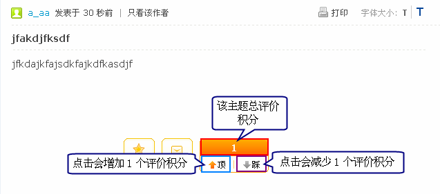 主题评价,用户可以对某主题评价,以表达自己的观点态度;当主题所得的评价指数达到后台设置的指数级别时,会显示评价图标;
