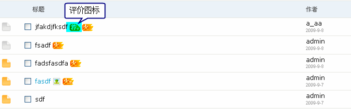 当主题的评价指数达到后台设置的指数级别时,在主题列表页将会显示对应级别的评价图标: