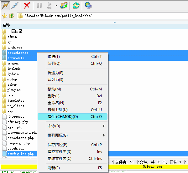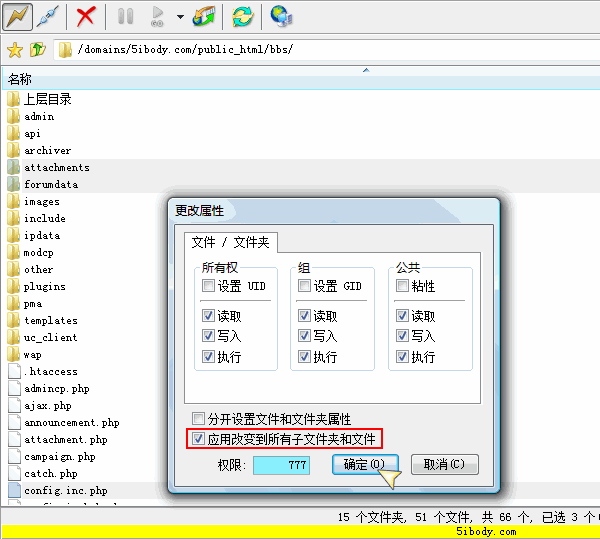 二、解压并上传论坛程序到服务器且修改相应目录权限