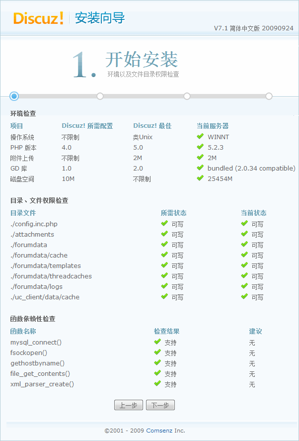 一、下载适合自己 Discuz! 7.1 版本到本地或服务器