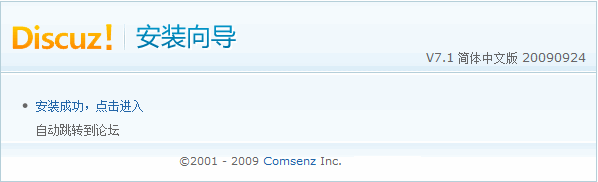 至此,Discuz! 7.1 已经成功地安装完毕!您可以登录 Discuz! 7.1 站点并开始设置了。