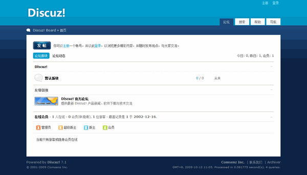 安装完毕后进入 Discuz! 7.1 首页查看网站: