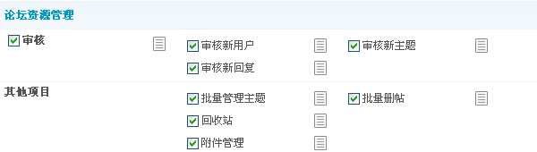 3 、论坛资源管理可以设置该管理组对审核及批量管理的权限;