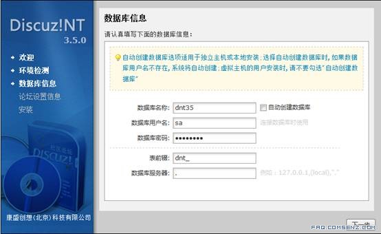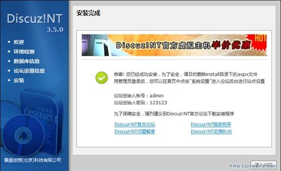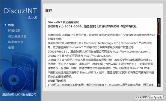 Discuz!NT的各个版本安装基本相同,在此用Discuz!NT