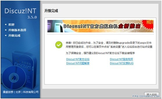 5 、 升级成功后,必须马上删除服务器上的upgrad文件夹,以避免可能的安全问题
