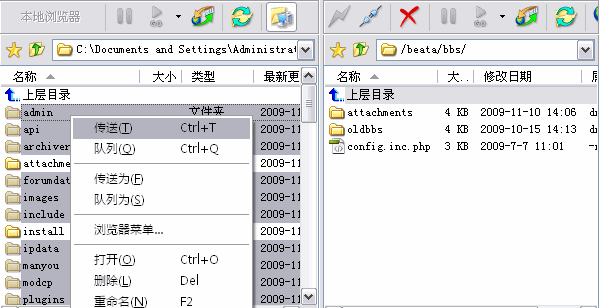 1 、首先把 FTP 目录下除了 attachments 和 config.inc.php 文件以外,把其它所有文件和目录全部移动到一个新建的 oldbbs 目录中