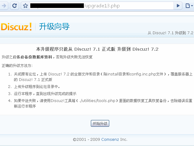 5 、在浏览器中运行 http://www.domain.com/upgrade13.php 升级程序进行升级 (其中 http://www.domain.com 为你的论坛访问地址)
