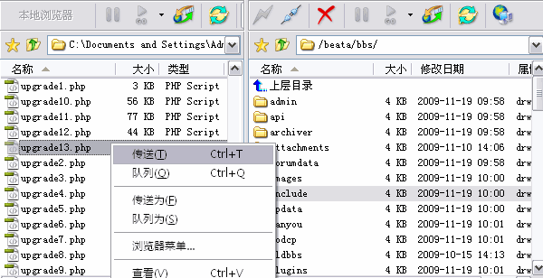 4 、上传下载的 Discuz! 7.2 安装包的 。/utilities/upgrade13.php 到论坛程序根目录下
