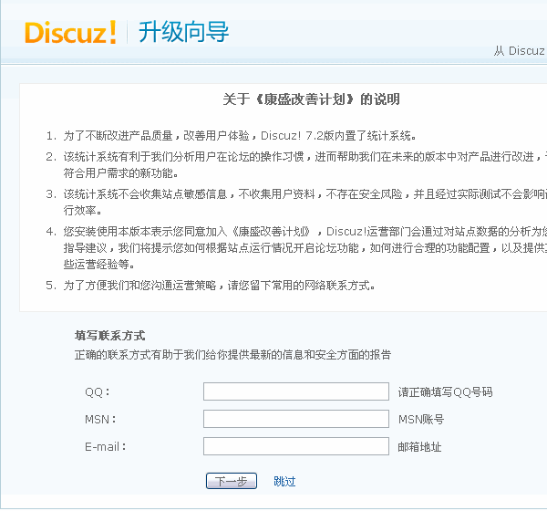 为了方便我们和您沟通运营策略,您可以留下常用的网络联系方式,也可以点击 「下一步」 跳过该步。