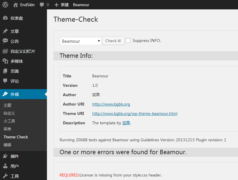 WordPress 对提交到官网主题的要求是及其严格的,有诸多限制,所以造成 WordPress 官网主题库的主题比较少。即使及其熟悉主题规范的人也不能保证写代码的时候不会出现纰漏。所以,在主题提交到官方之前我们可以使用 Theme-Check 插件对主题进行检测,找出不允许的地方改进。