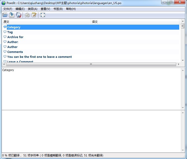 使用 poedit 翻译主题,必须有一个条件,即主题有语言包,可以在主题中看到:languages 目录 (比如:WordPress 图片主题:Photoria),有些主题会放在 lang 目录 (比如:WordPress 电影主题:Foxnet) 。