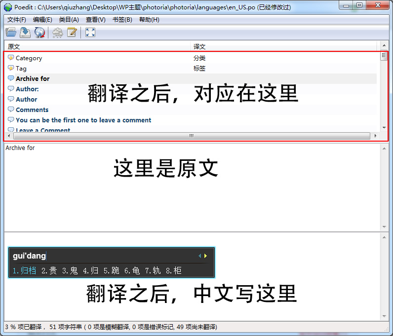 9,新手翻译,可以多看看一些已经有中文语言包的主题,主要是收集他们的翻译,学习翻译的技巧。